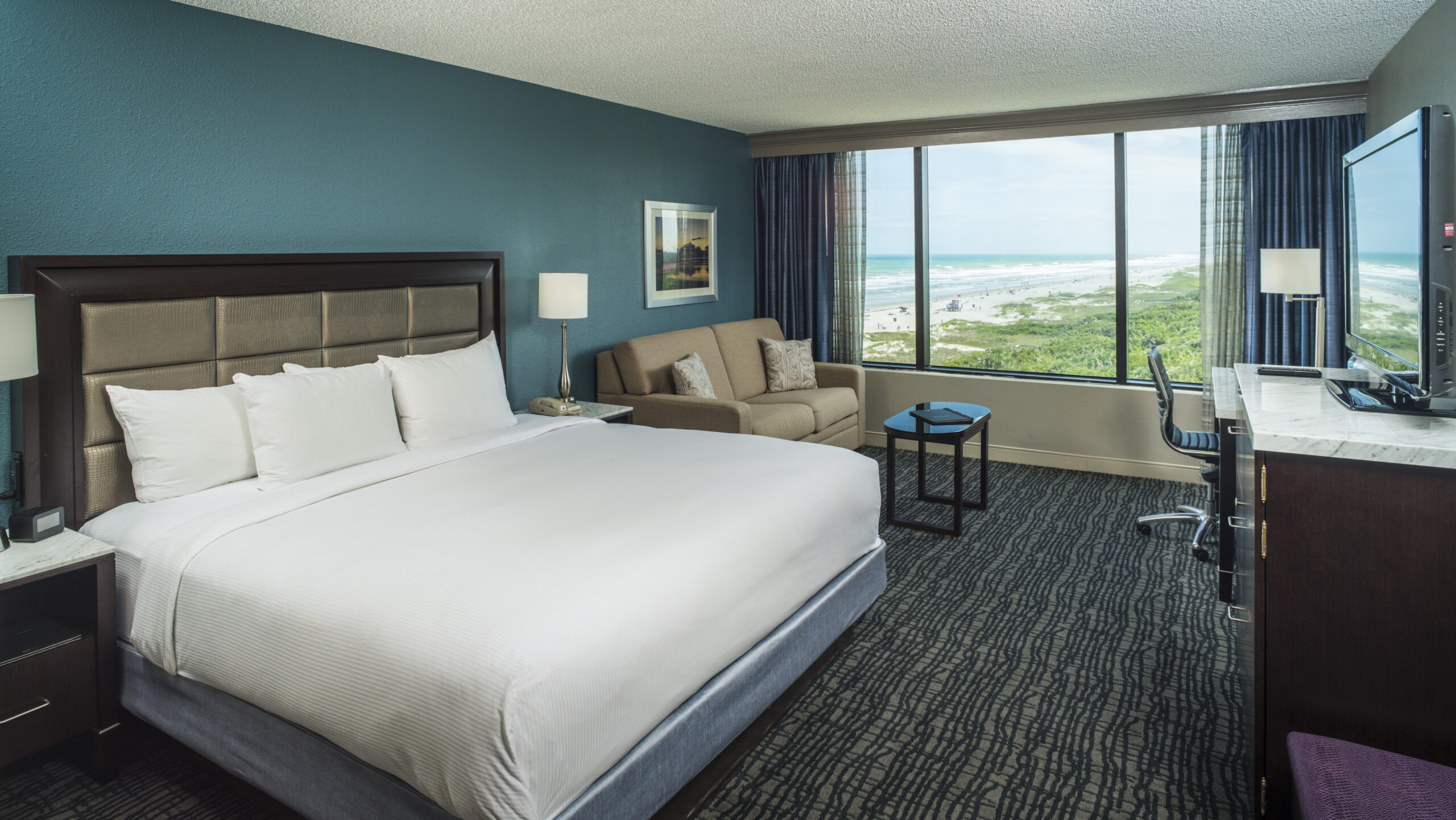 Nestled on a pristine stretch of sand, Hilton Cocoa Beach Oceanfront captures the allure of Florida’s Space Coast. Located 20 minutes from Kennedy Space Center Visitor Complex, our Cocoa Beach Florida hotel is a short drive from Port Canaveral and the airport. An upscale choice among Cocoa Beach hotels, our location is ideal for vacations, business meetings, or overnight stays before your cruise. Stroll lazily along the soft sand, and enjoy the sun-wreathed waters of the Atlantic Ocean. Organize a family sailing trip, and experience memories in the making. Allow the stresses of yesterday to melt away beneath the warm Florida sun. Treat yourself to this resort-style destination, and experience refreshment within an exceptional setting.