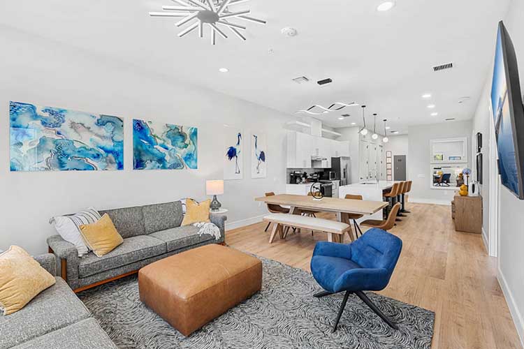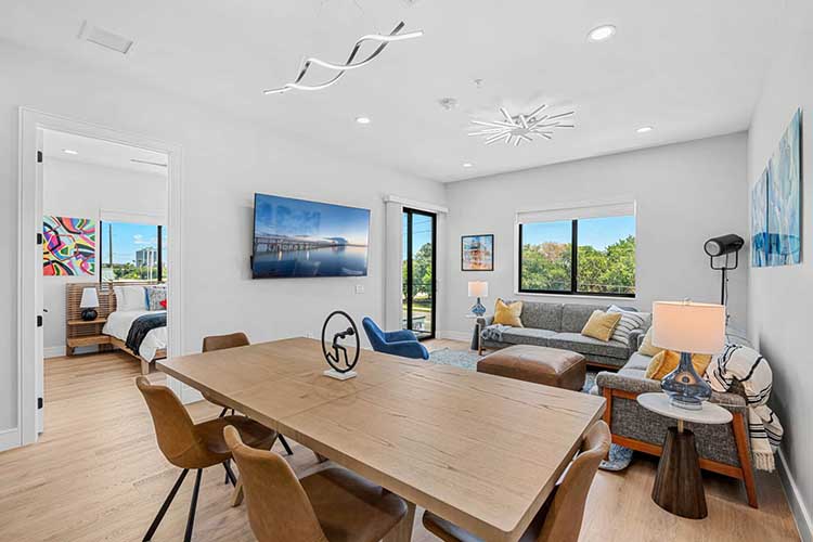 Welcome to Major Nelson’s Lookout Suite at Wave Haven, centrally located in Cocoa Beach, FL! This modern and brand-new 2BR/2.5BA luxury apartment is part of a zero net emissions property, blending eco-conscious living with upscale design. Located across the street from I Dream of Jeannie Lane at Lori Wilson Park with public beach access, you’ll be just one block from the sand! Professionally designed and furnished, this second-floor retreat features an east-facing balcony for refreshing ocean breezes and rocket launch views, all while being a short walk from Downtown Cocoa Beach’s restaurants, art galleries, and events.