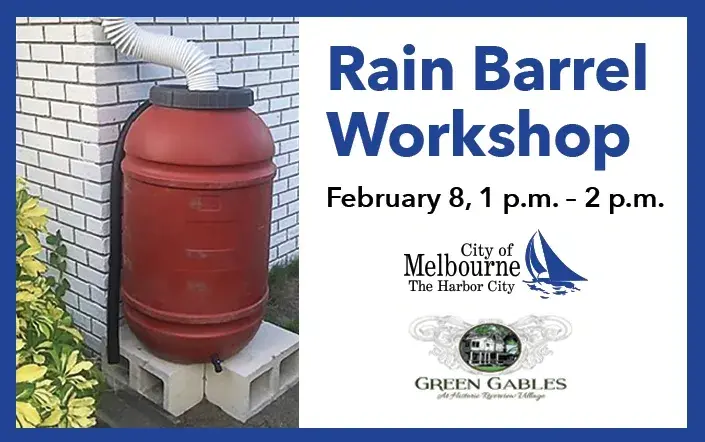 The City of Melbourne has partnered with Green Gables to host rain barrel workshops. Participants will receive a free rain barrel at the workshop, will learn the benefits of using a rain barrel, and will learn how to install and use a rain barrel.